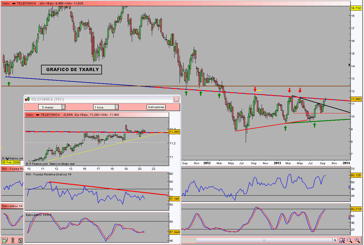La Matilde rompe su zona control y por lo tanto ya tiene licencia para subir o para matar, a los cortos me refiero tendrán que salir corriendo hay muchas pero muchas estrategias bidireccionales montadas con Telefónica que tendrían que ser cerradas si lo consigue, ayer ya visteis nuestro gráfico, ha tenido que ser un pozo de plusvalías para los estrategas con opciones … las cunas vendidas han tenido que dar dinero a raudales, o las ventas de puts.