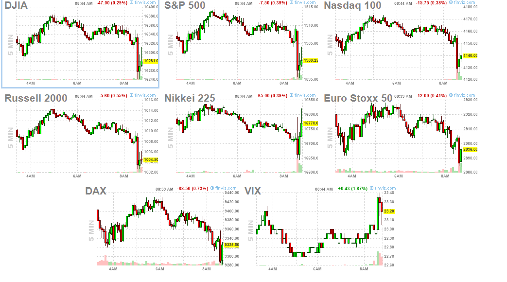 No han disimulado para nada el disgusto por tan buen dato de empelo los futuros una hora antes de la apertura del contado en EEUU las repercusiones para la RV USA son más negativas que positivas aunque parezca totalmente paradójico, si llega a salir un 5.5% el estallido alcista habría sido la leche pero con un 4.9% veremos la resaca luego, por el momento lo previsto mercados a la baja, y el de los Bonos también.