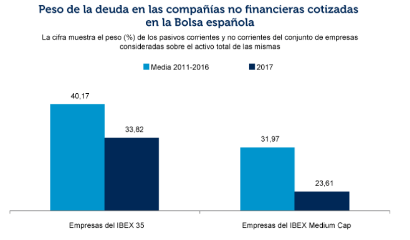 A nivel Microeconómico el sector exterior es decir las exportaciones crecen año tras años, vendemos más y mejor fuera de nuestras fronteras, tanto que las empresas cotizantes tiene más cifra de negocio fuera que dentro de España. Además las empresas españolas bajan su deuda por lo que aumentan su solvencia.