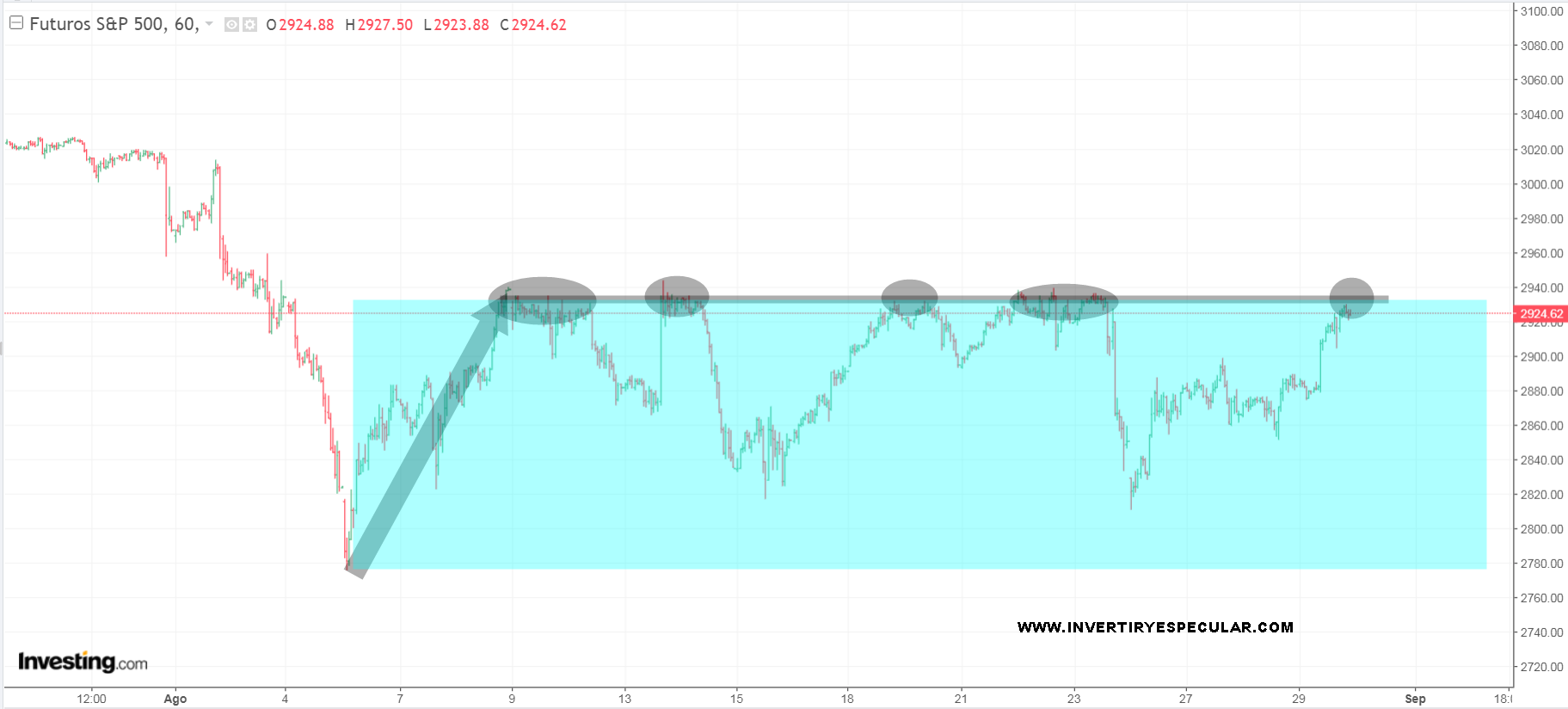 Desde luego el control de los mercados en meses como estos de agosto queda en evidencia los algoritmos se interconexionan como neuronas y dan las mismas órdenes a la cotización desde Nueva York a Tokyo con alguna variación pero sin mayor trascendencia. Hoy es cierre semanal y mensual, en los fines de mes suelen ser más bien prácticos los operadores y recoger beneficios, pero esta vez los índices están en resistencia clave que podría implicar la formación de un suelo. Veremos la decisión de la mano invisible al cierre de hoy en Wall Street por el momento esta todo realmente «muy claro» por el lado técnico.