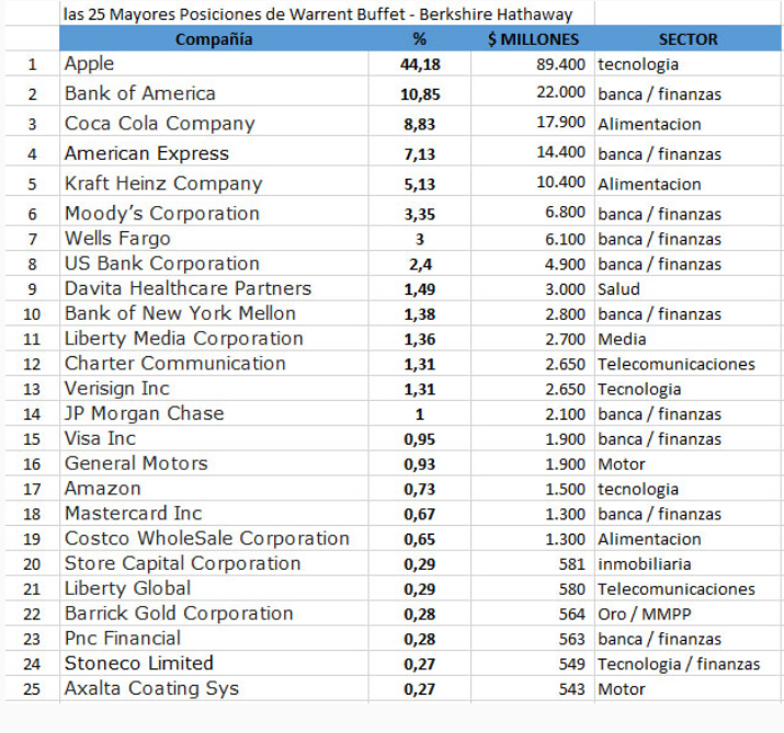 No creo que nadie pueda decir que una cartera está diversificada cuando dos valores pesan el 55% del total de la misma. Y eso que un día dijo «nunca invertiría en Apple».