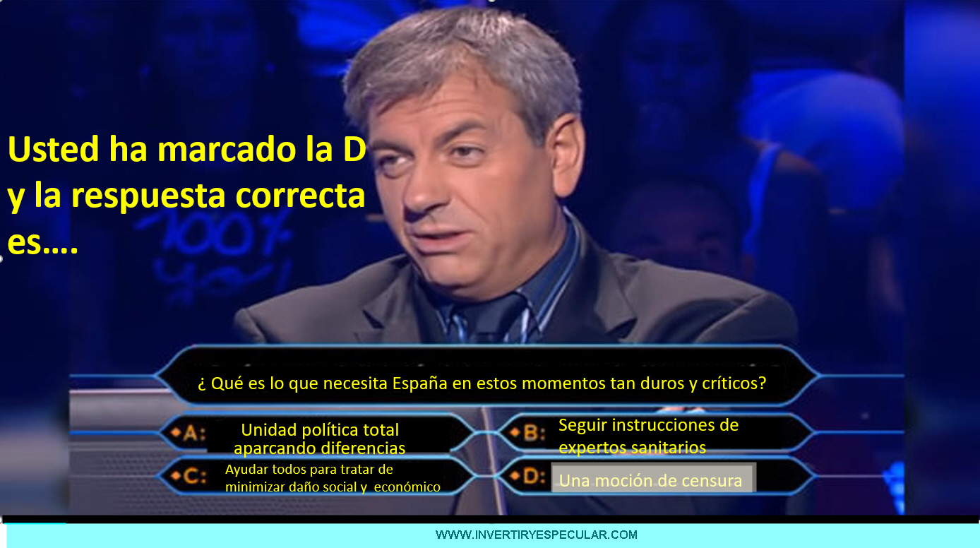 Y la izquierda está pegada con saliva si que estamos buenos Miguel con nuestros bandos políticos … si Sánchez pilla por banda a Arrimadas con los votos de antaño .. manda a Podemos, los nacionalistas y los regionalistas a tomar por donde la espalda pierde su buen nombre.