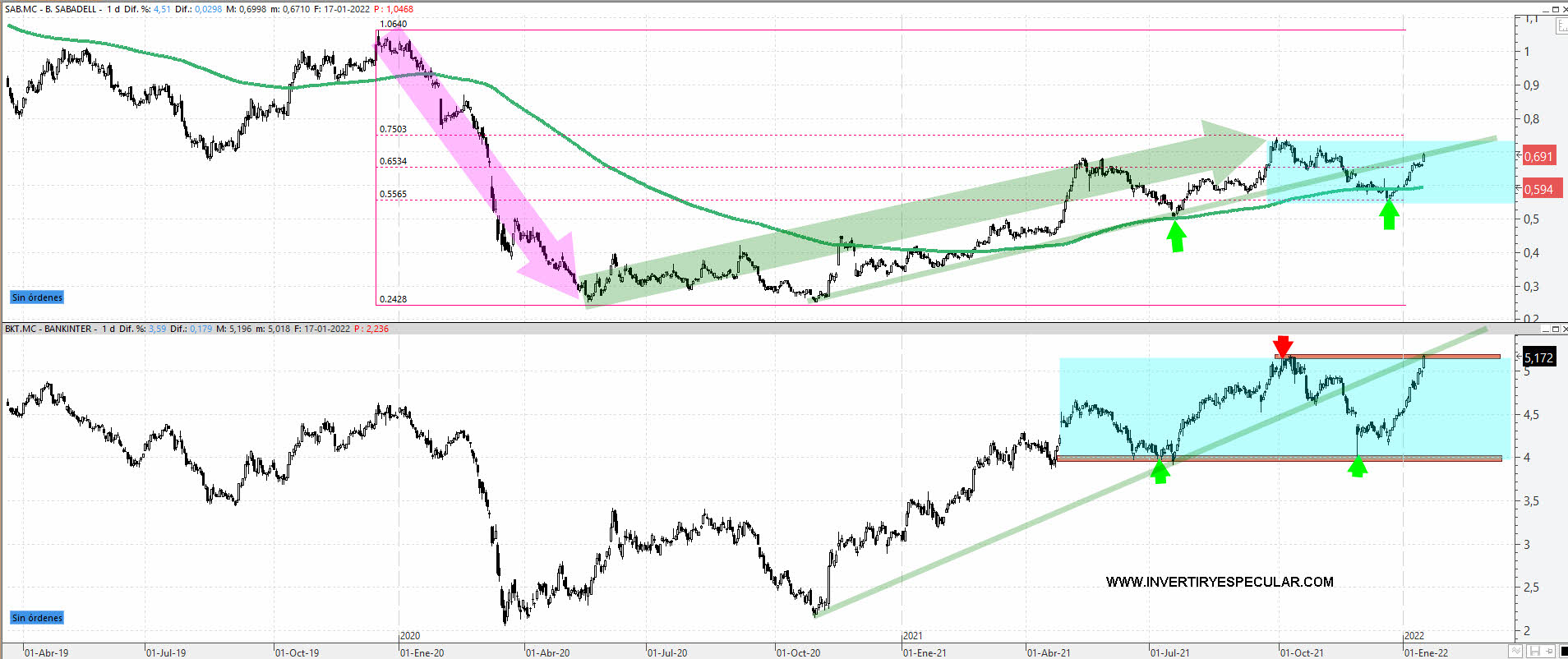 Pero en esta última corrección al querer venirse arriba la EMA 200 SEMANAL y la directriz alcista del 2009 han ejercido de resistencia al precio, y como el MACD se gire en cero a la baja los objetivos del valor son los retrocesos tradicionales de Fibonacci pudiendo descender a los 40, 35 o 30 euros.