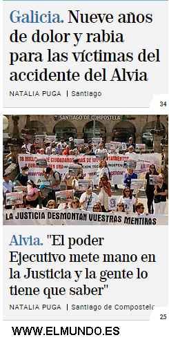 La justicia lenta , no es Justicia, nueve años las víctimas del accidente del Alvia esperando por un juicio que por fin se da fecha para octubre, esto es como el avión de los canarios que se estrelló en Barajas, tratar de pagar las mínimas indemnizaciones posibles, culpar al maquinista y algún cargo de Adif y/o Renfe liberando al Estado y a la Compañía de mayores gastos y responsabilidad alguna que para eso pagan los seguros. Si han tardado nueve años para dar fecha al juicio imaginaos lo que tiene dentro la demanda.