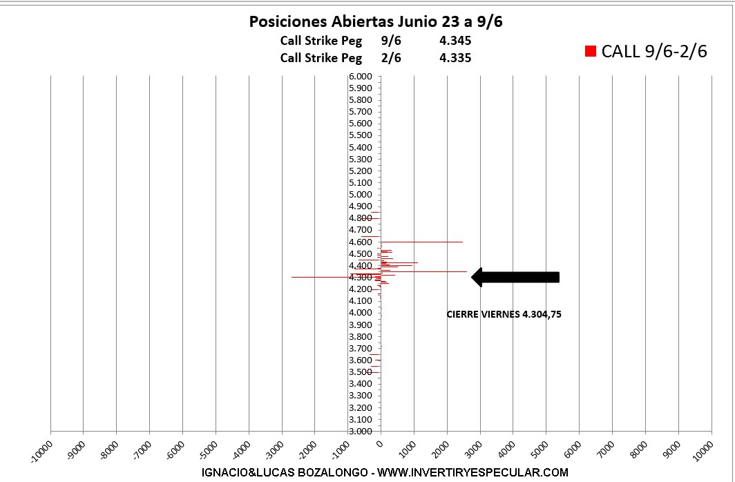 Fijaos en los volúmenes negociados la semana pasada por encima del precio de mercado, eso implica que los operadores tienen una visión alcista del mercado, fijaos en el subidón de la PUT STRIKE PEG la primera a la segunda semana de junio. Mientras que en el lado call apenas nada. Subir PUT STRIKE PEG es señal de visión alcista profesional porque solo los profesionales operan con altos volúmenes de contratos.