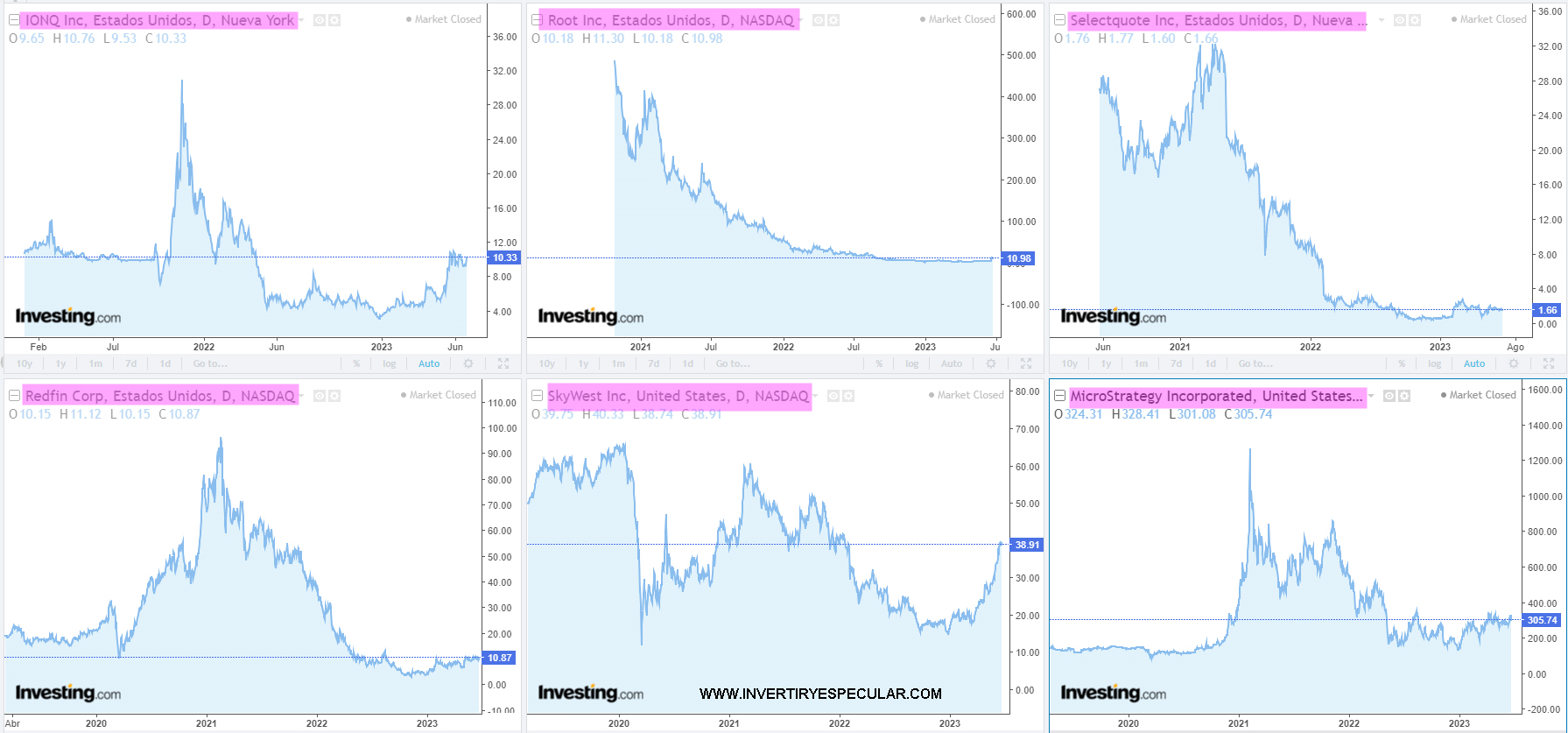Root Inc es otro ganador notable en el índice Russell 2000, habiendo ganado más del 170%. La mayoría de estas ganancias ocurrieron la semana pasada cuando surgieron especulaciones de una compra total. Otros de los mejores en el índice son Selectquote, Redfin, Skywest y Microstrategy. Este último ha saltado debido a su exposición a Bitcoin.