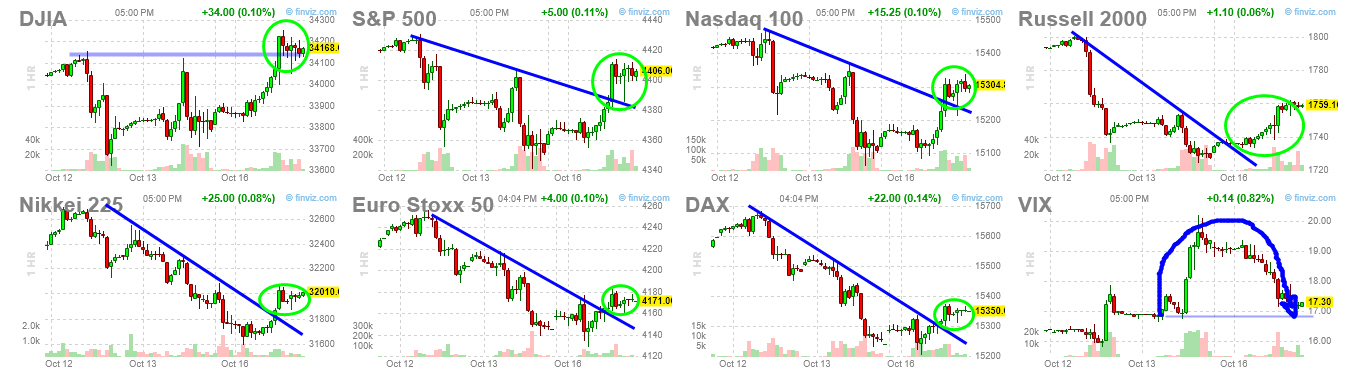 Tras resultados de la Banca lo más importantes serán los que vayan llegando de las BIGS-TECHS, asi que no queda más remedio que tragarnos días de dientes de sierra mientras al mercado le aclaran un poco el futuro, ya estáis viendo no se gana en el lado largo pero en el lado corto tampoco a más de una sesión, la volatilidad volvió a tocar 20 el viernes y otra vez patada a la baja desde luego tal nivel es la resistencia oficial o dicho por pasiva el punto donde entrar largo. Antes eran niveles de 35-30 de VIX esto nos dice el buen fondo de mercado que hay, que la tendencia alcista está totalmente sana. Ahora falta que se lo diga la economía real y las autoridades económicas que la controlan. El indice miseria de los EEUU es un enviado y envidiable 7.5 el de España es exactamente el doble 15 (11.5+3.5) (IM=%PARO+%INFLACION) y eso que vamos en moto, llegamos a ir en bicicleta y alucina vecina.
